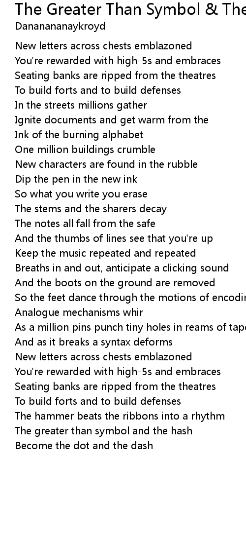 The greater than symbol and the hash |
