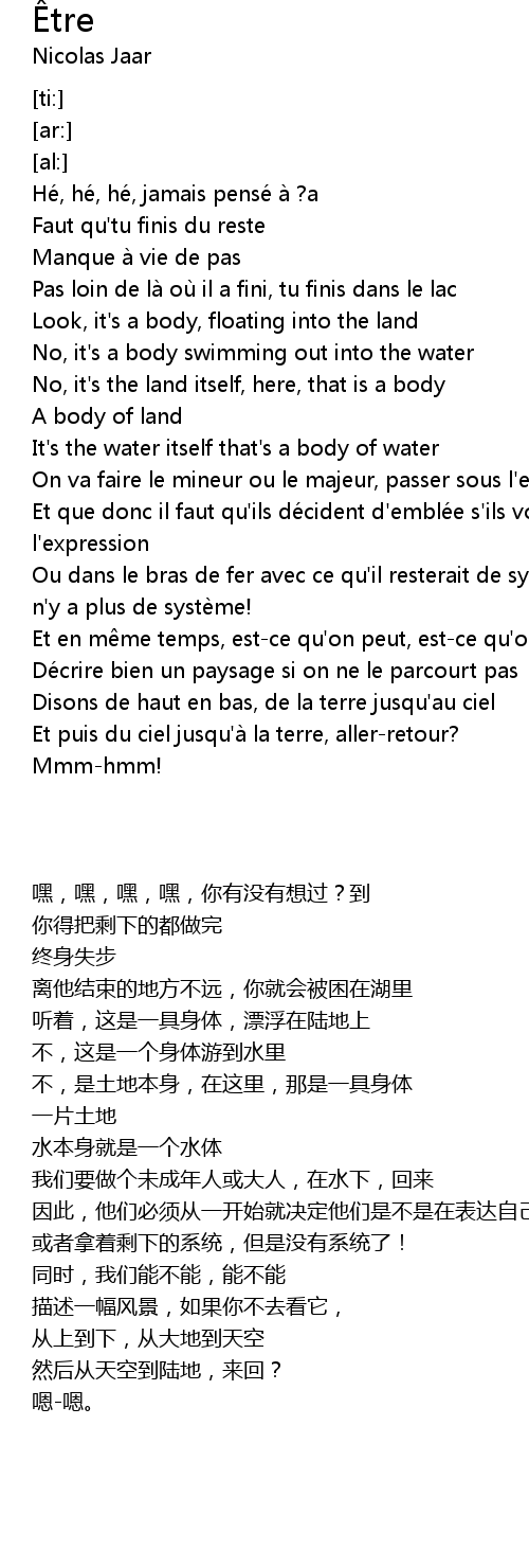 | [00:13.16] | Pas loin de là où il a fini, tu finis dans le lac |