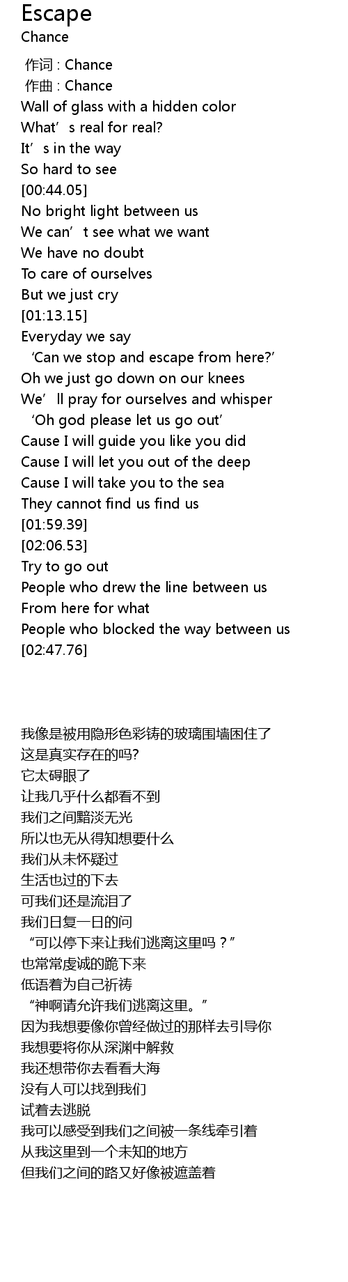 | [01:21.03] | ' Can we stop and escape from here?' |