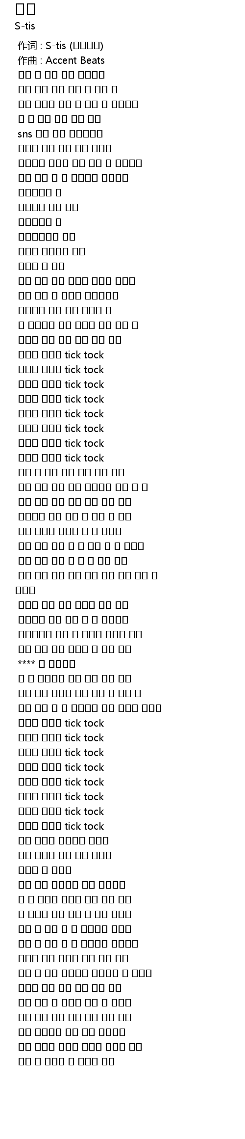 | [00:00.000] | 作词 : S-tis (에스티스) |