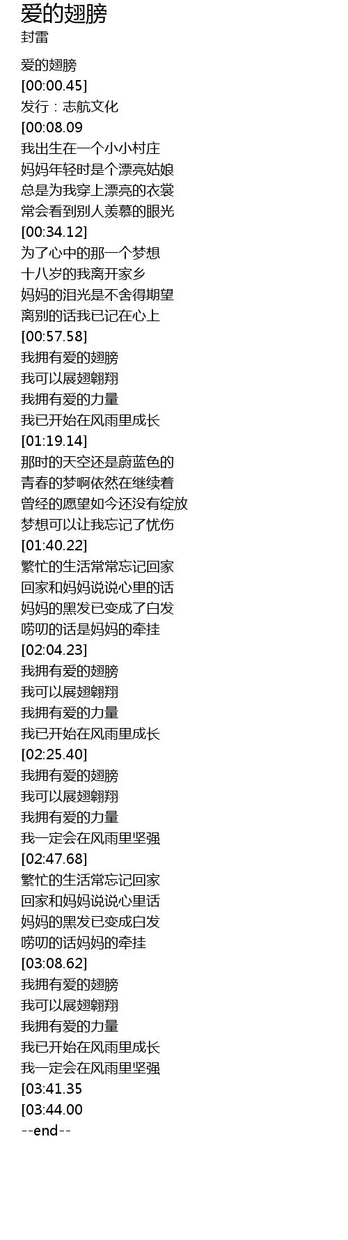 | [00:00.00] | 爱的翅膀 |