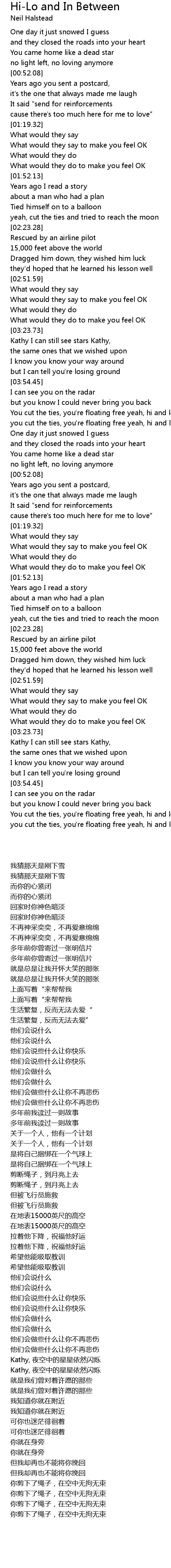 | Song | Hi-Lo and In Between |