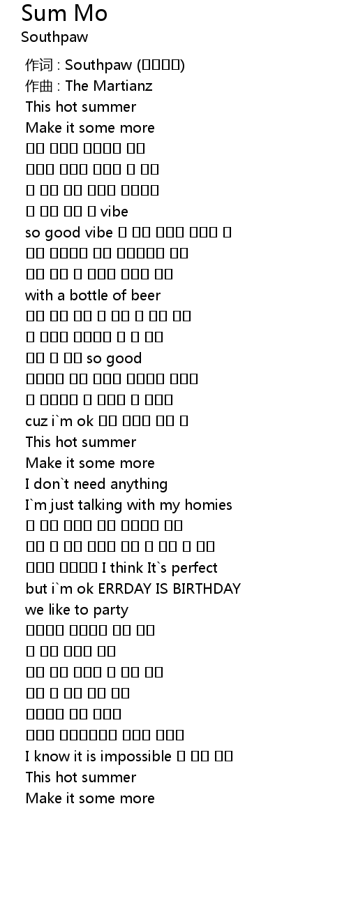 | Song | Sum Mo |