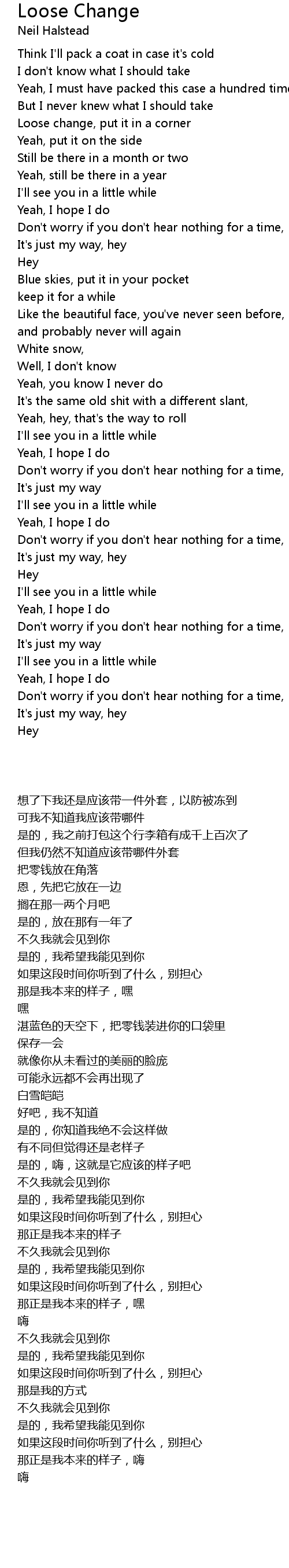 Loose change, put it in a corner |