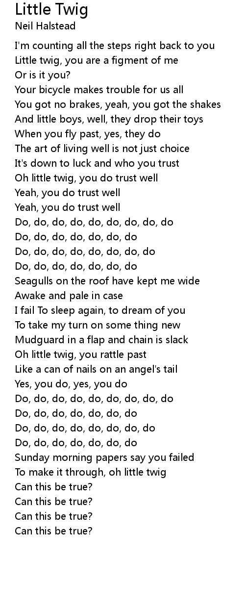 To make it through, oh little twig |