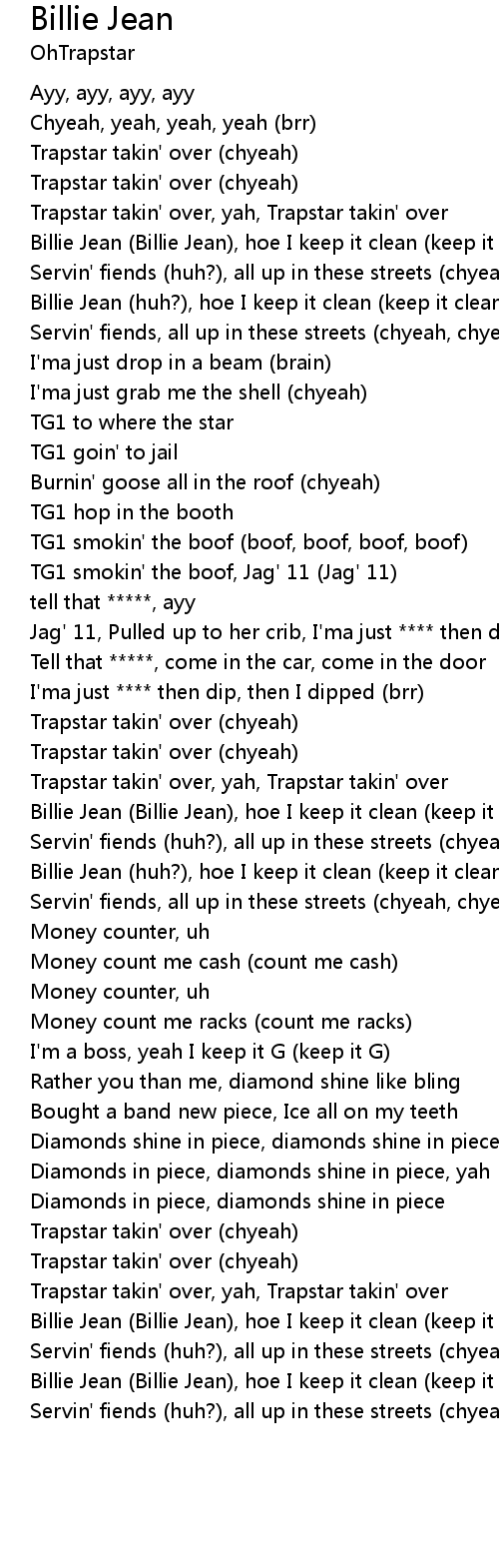Billie Jean (huh?), hoe I keep it clean (keep it clean) |