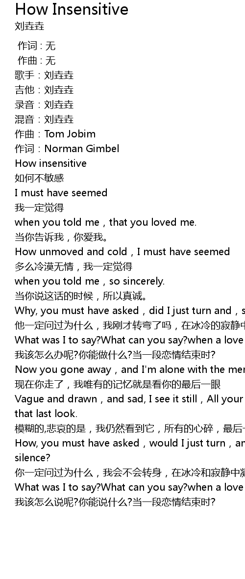 | [00:30.18] | How unmoved and cold,I must have seemed |