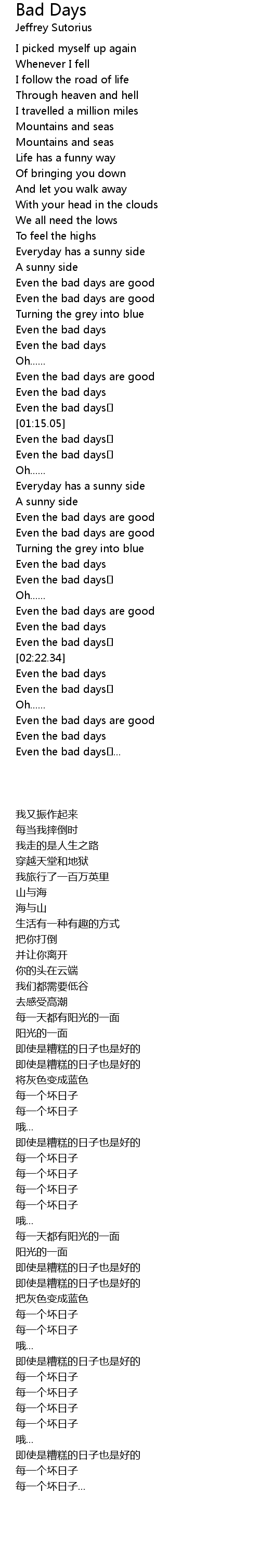 | [00:44.14] | Even the bad days are good |