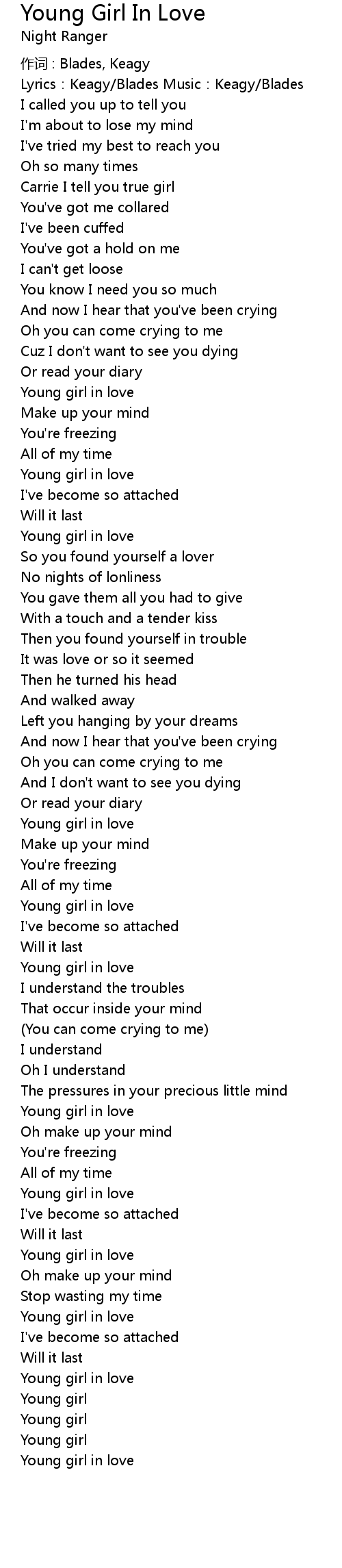 | Song | Young Girl In Love |