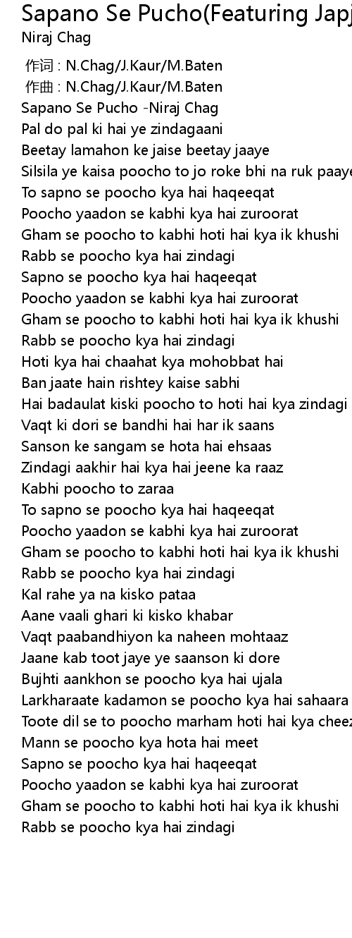 | [00:00.497] | Sapano Se Pucho -Niraj Chag |