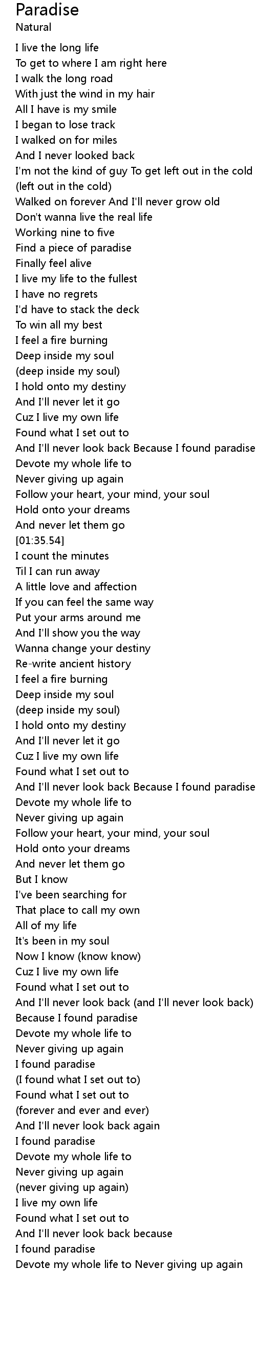 And I'll never look back Because I found paradise |