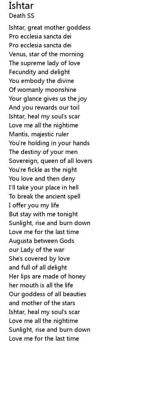 | Ishtar, heal my soul's scar | |