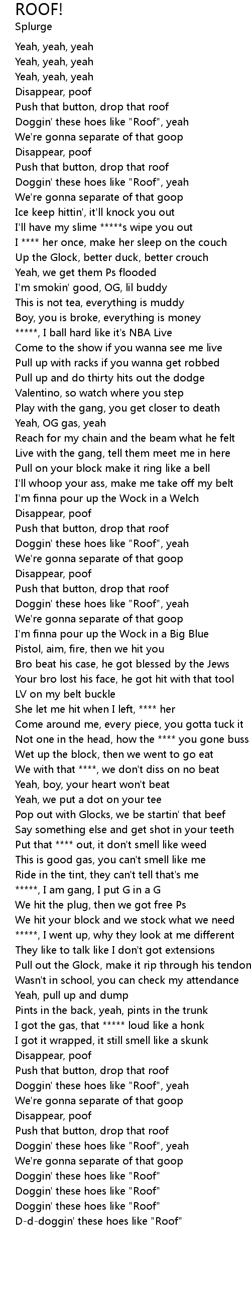 | [02:24.522] | Doggin' these hoes like "Roof", yeah |