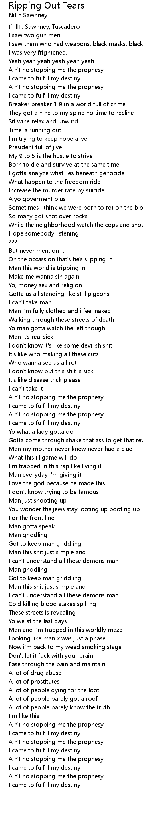 | Song | Ripping Out Tears |