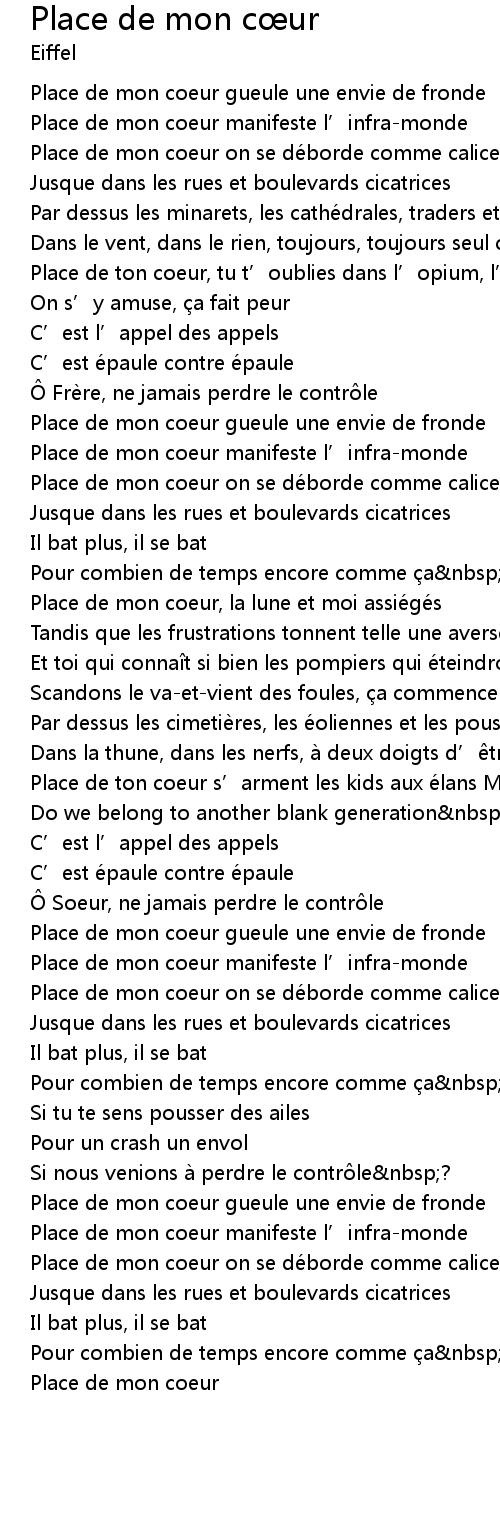 | Place de mon coeur on se déborde comme calice | |