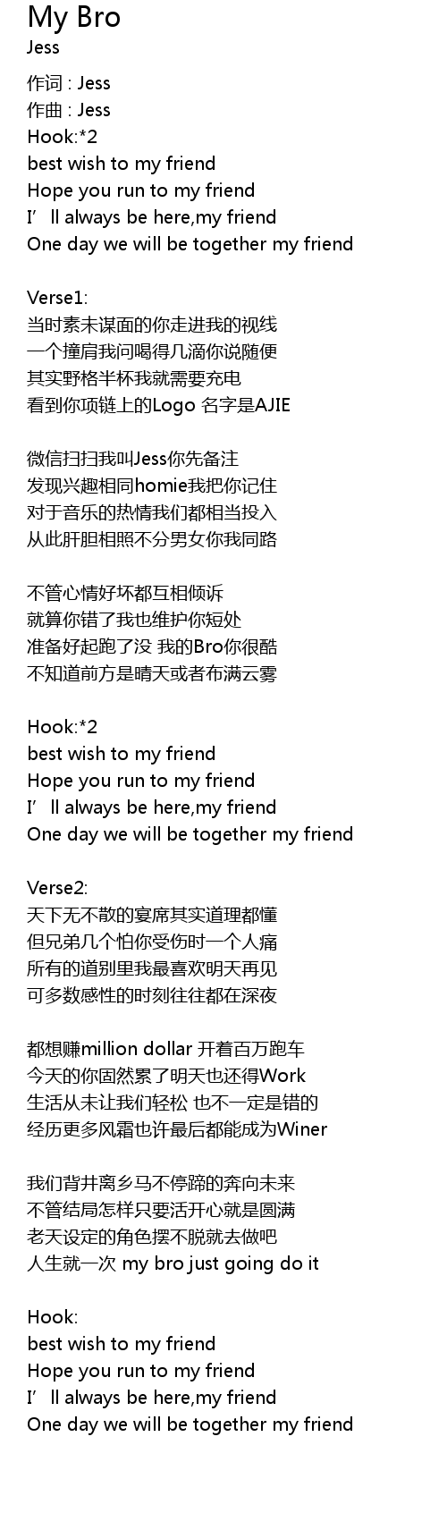 | 但兄弟几个怕你受伤时一个人痛 | |