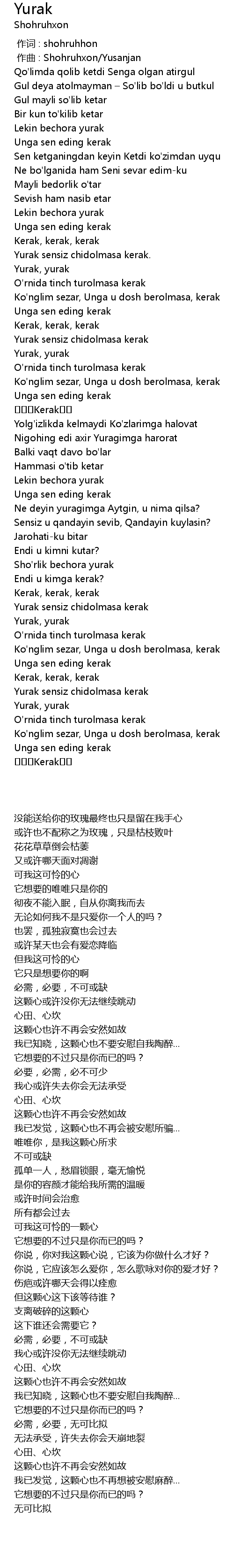 | [00:01.000] | zuo qu : Shohruhxon Yusanjan |