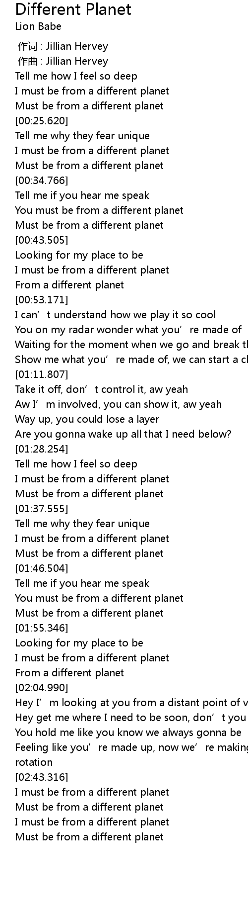 | [02:33.995] | Feeling like you' re made up, now we' re making love on our own rotation |