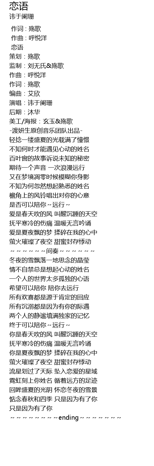 | [00:11.60] | -渡妍生原创音乐团队出品- |
