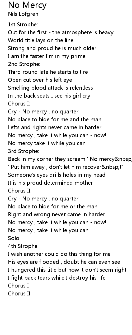 Back in my corner they scream ' No mercy !" |