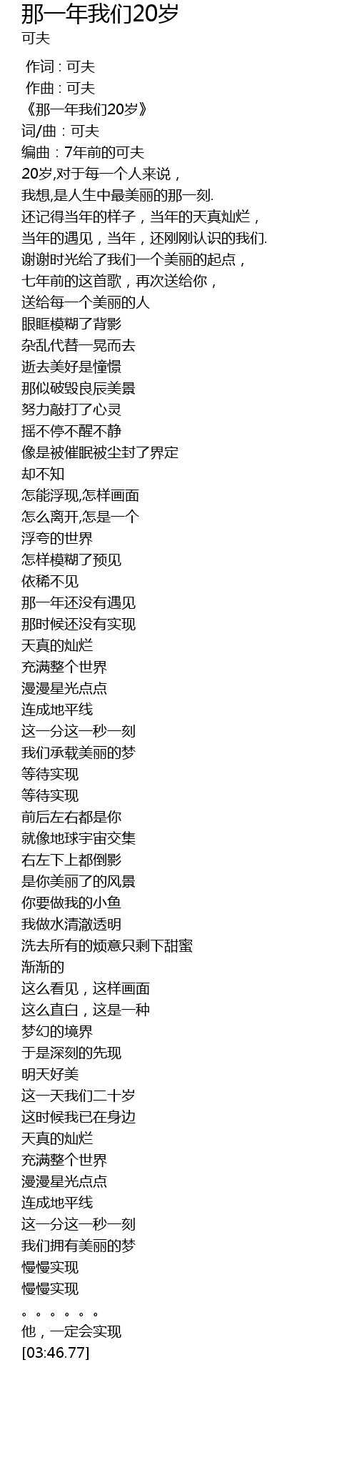 | [00:00.15] | nà yī nián wǒ men 20 suì |