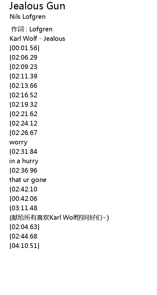 | [01:40.70] | (献给所有喜欢Karl Wolf的同好们~) |