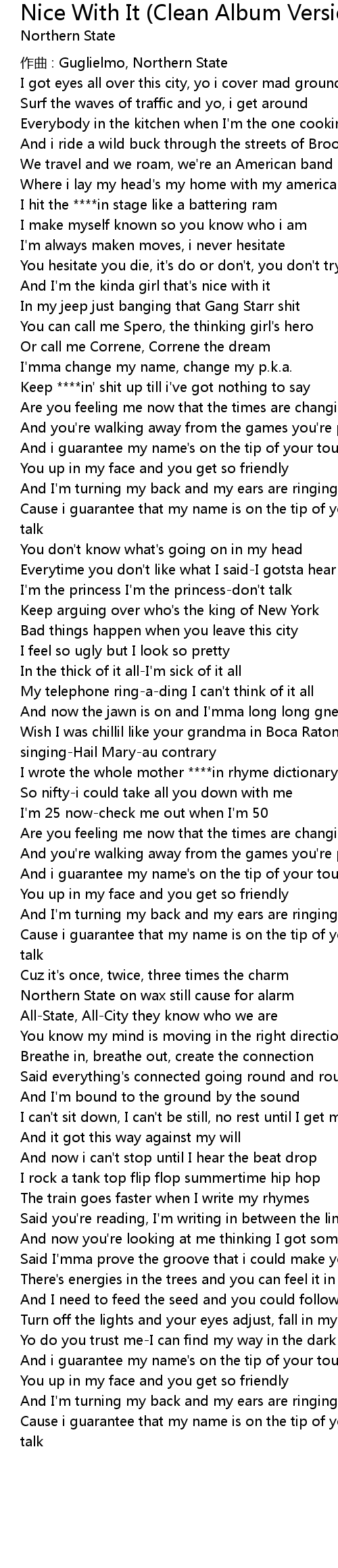 | Song | Nice With It (Clean Album Version) - Clean Album Version |