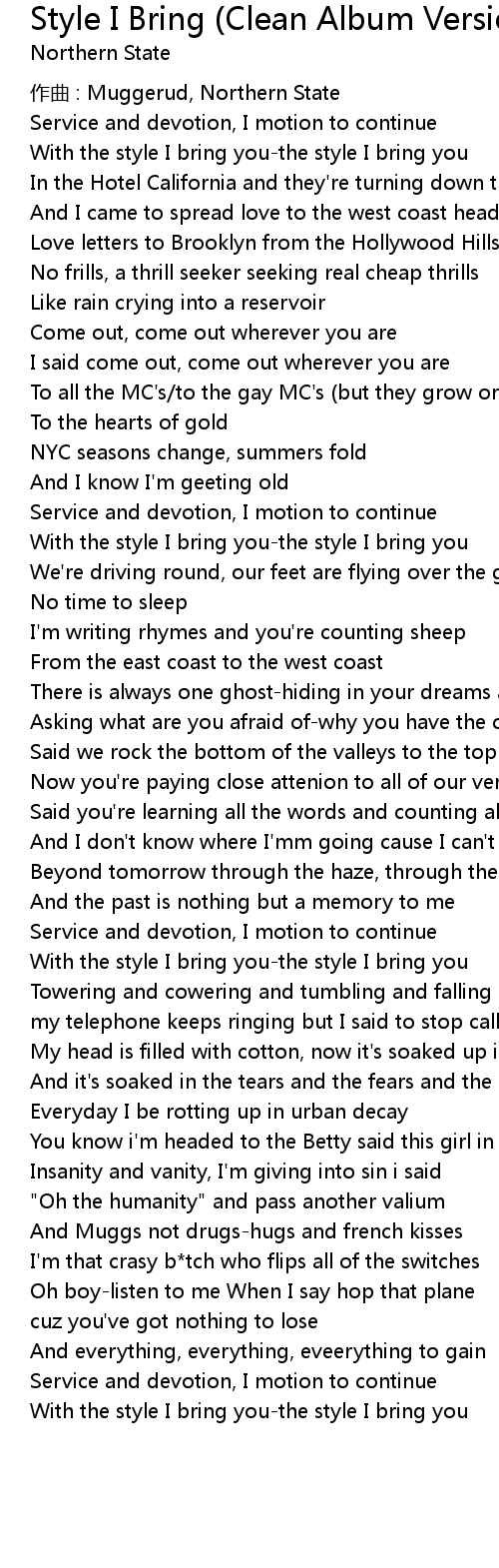 | Song | Style I Bring (Clean Album Version) - Clean Album Version |
