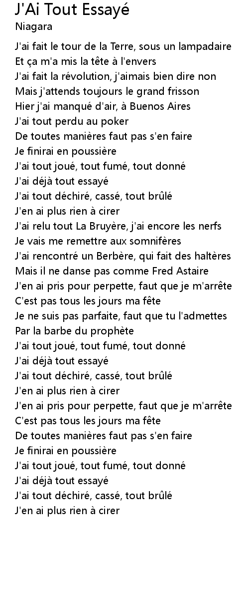 | J'ai tout déchiré, cassé, tout brûlé | |