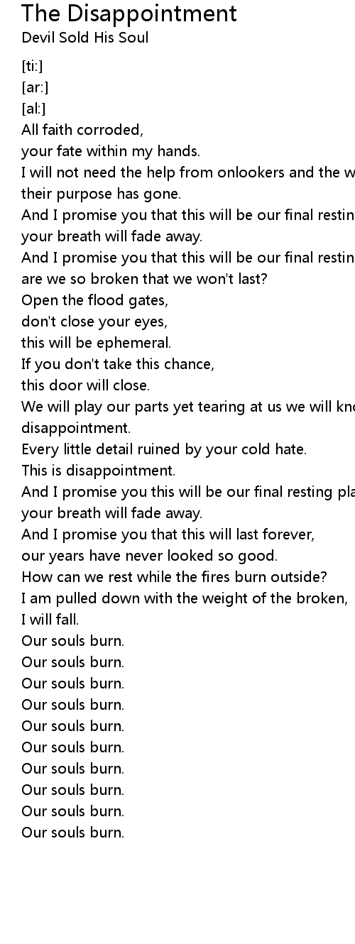 We will play our parts yet tearing at us we will know that this is a disappointment. |