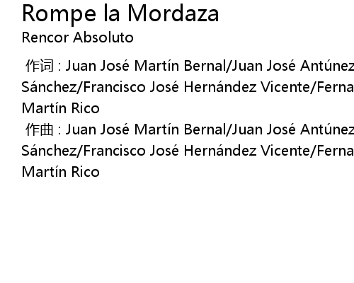 | [00:00.000] | 作曲 : Juan José Martín Bernal/Juan José Antúnez Sánchez/Francisco José Hernández Vicente/Fernando Cascón García/Carlos Martín Rico |