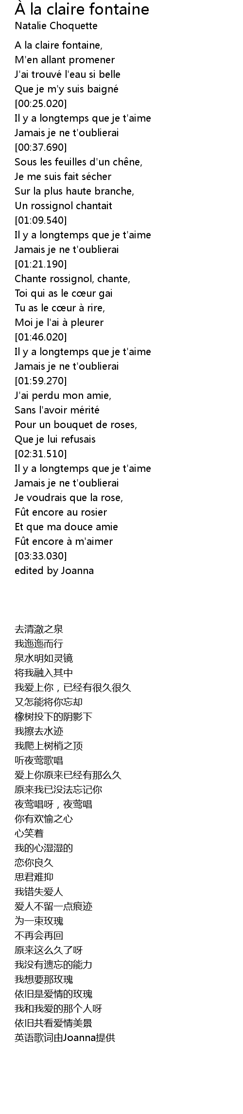 | [00:14.290] | J' ai trouvé l' eau si belle |