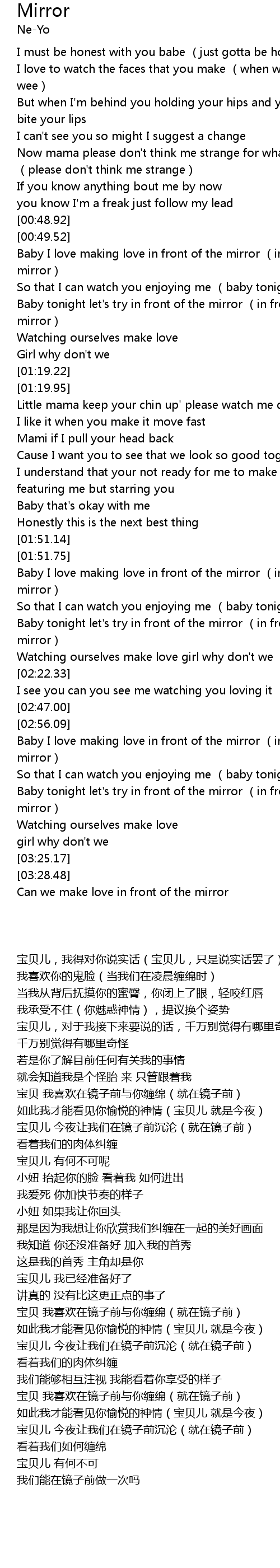 | [01:53.07] | Baby I love making love in front of the mirror (in front of the mirror) |