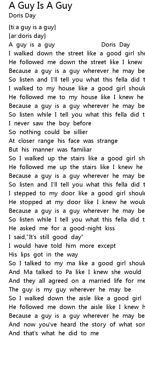 | [00:01.00] | A guy is a guy Doris Day |