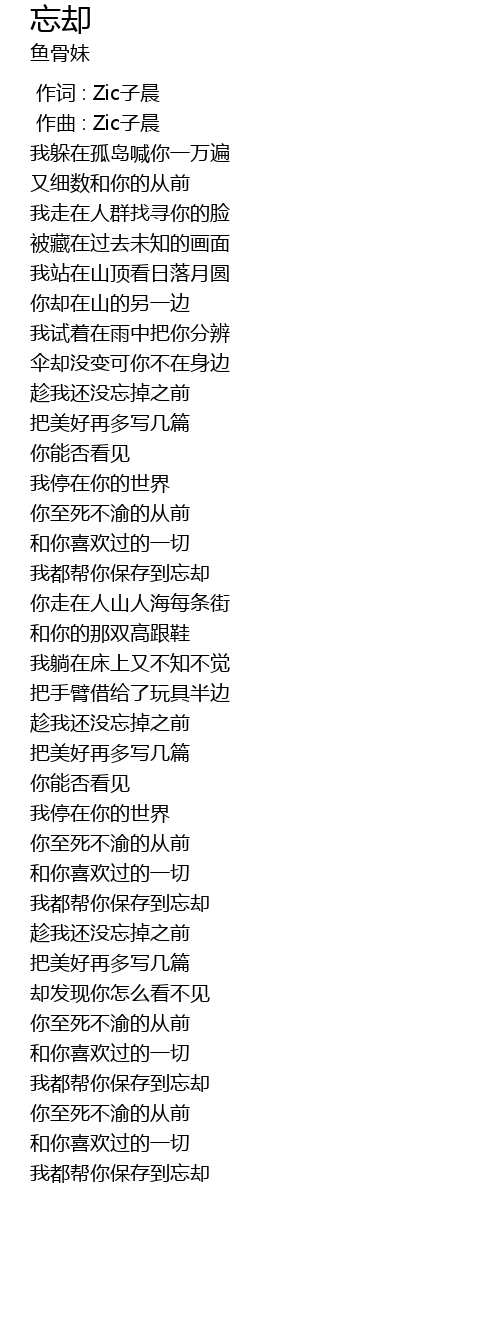 | [00:00.000] | 作词 : Zic子晨 |