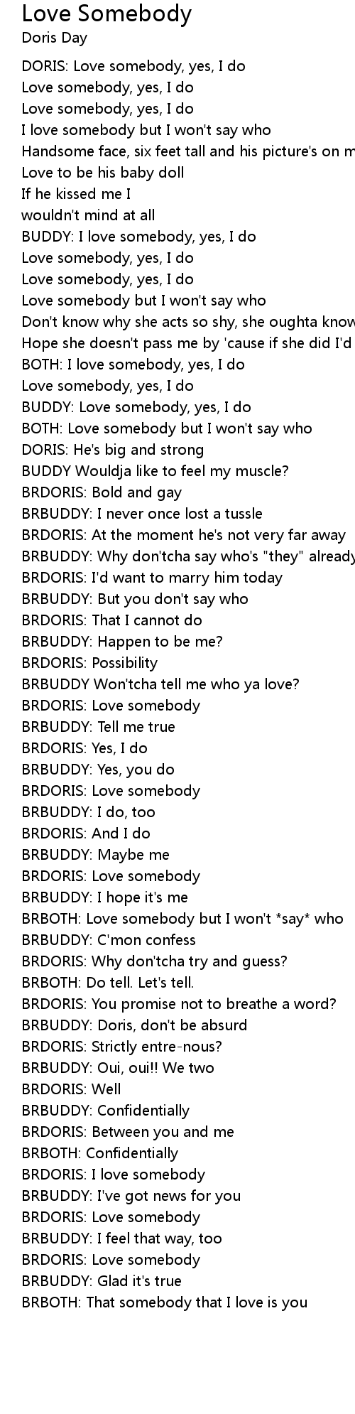 | [00:09.670] | DORIS: Love somebody, yes, I do |