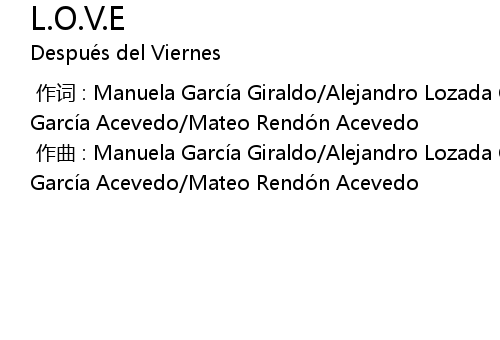 | [00:00.000] | 作曲 : Manuela García Giraldo/Alejandro Lozada Camacho/Esteban García Acevedo/Mateo Rendón Acevedo |