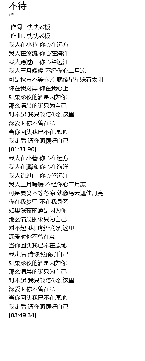 | [00:01.000] | 作曲 : 忱忱老板 |