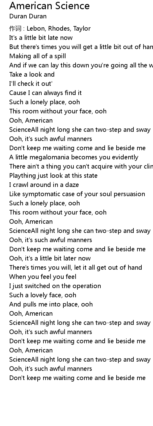 | 作词 : Lebon, Rhodes, Taylor | |