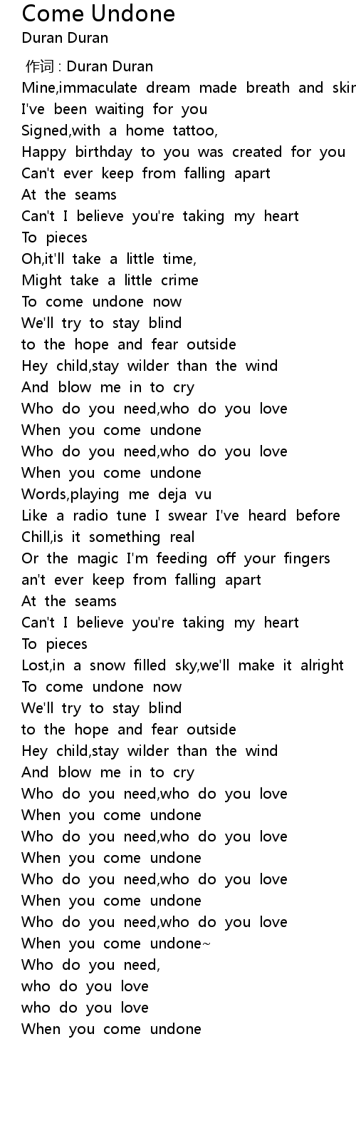 | [03:33.683] | When you come undone |