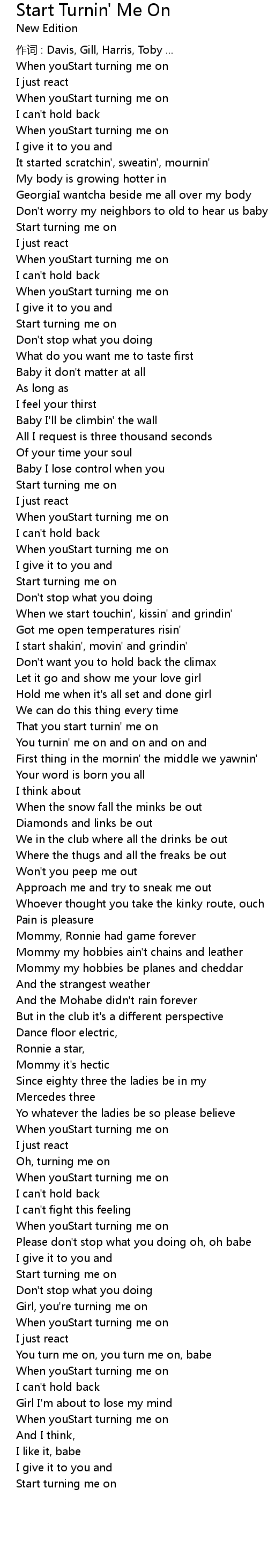 | You turnin' me on and on and on and | |