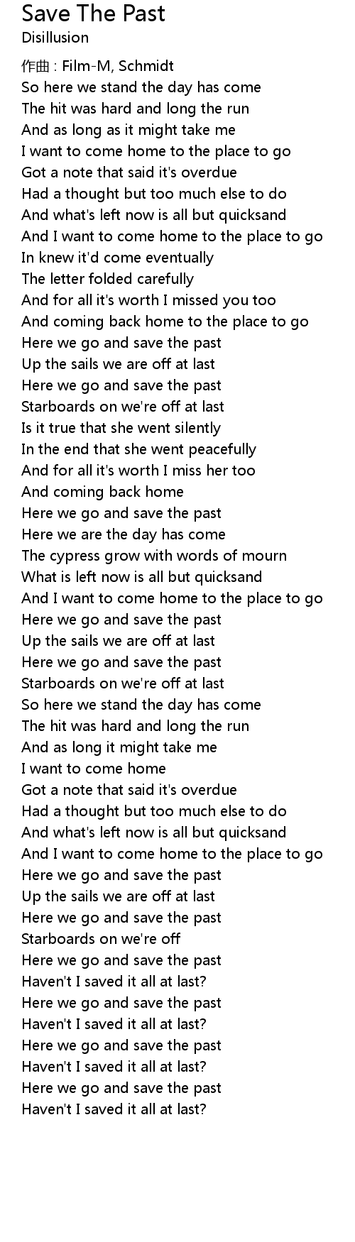 | Song | Save The Past |