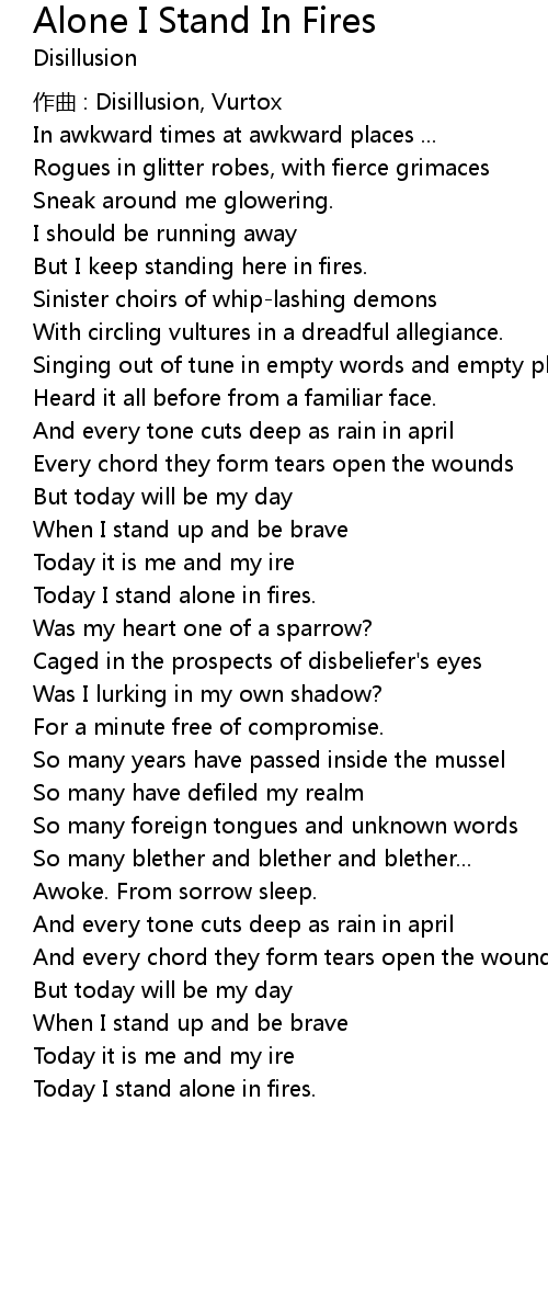| Today I stand alone in fires. |