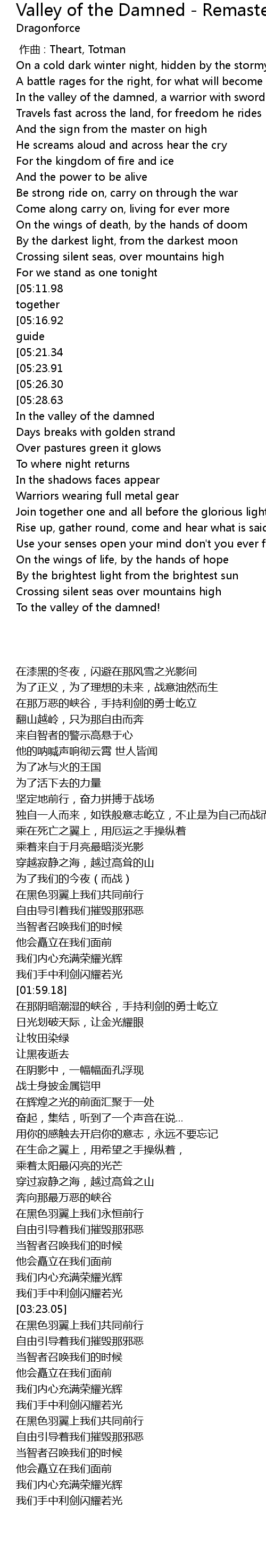 | [00:49.76] | In the valley of the damned, a warrior with sword in hand |