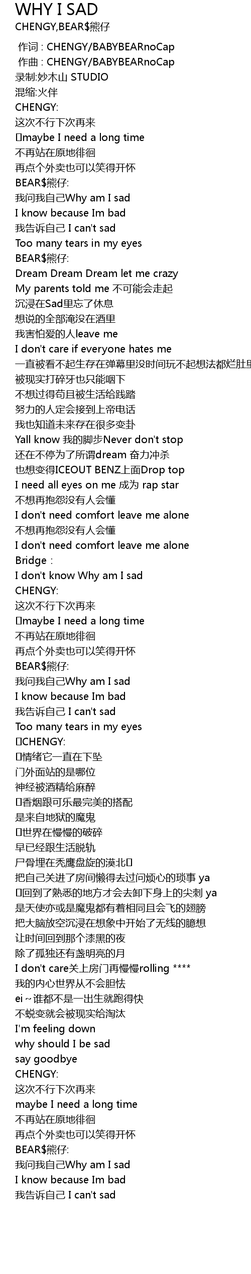 | [03:23.306] | wǒ wèn wǒ zì jǐ Why am I sad |