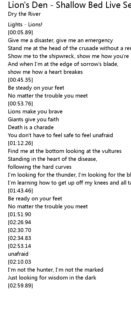 Lion's Den - Shallow Bed Live Sessions Lyrics