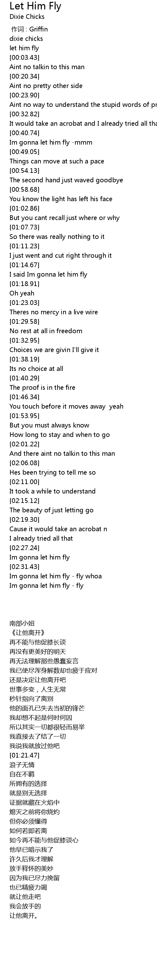 | [02:36.59] | Im gonna let him fly fly whoa |