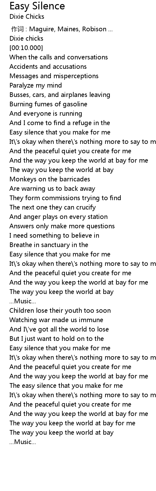 | [00:00.00] | 作词 : Maguire, Maines, Robison ... |