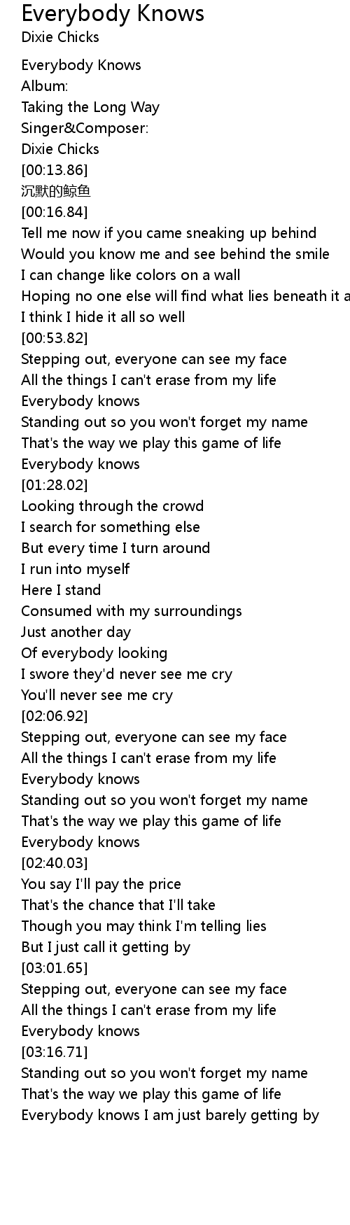 | [00:04.28] | Everybody Knows |