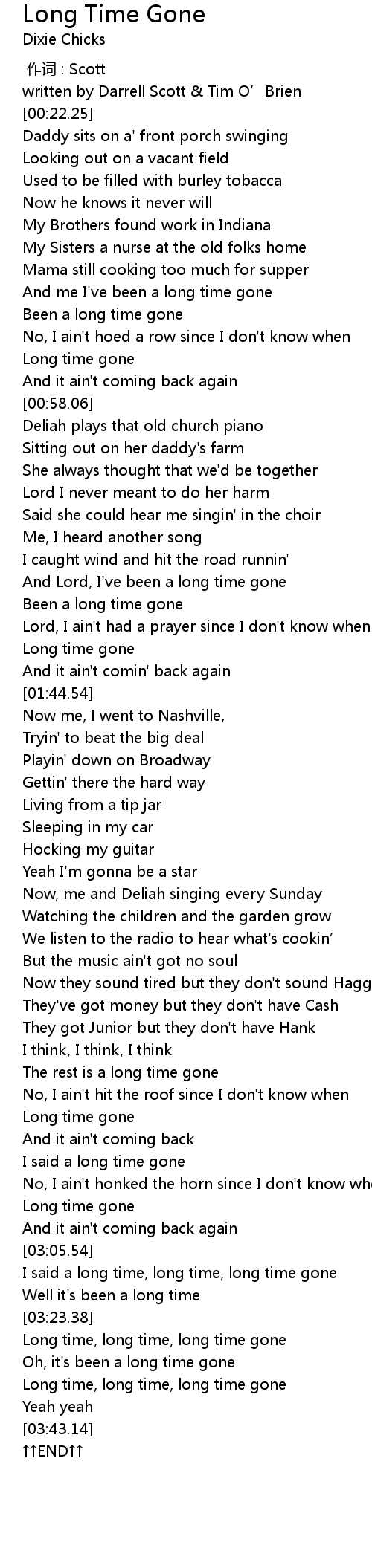 | [01:27.56] | And Lord, I' ve been a long time gone |